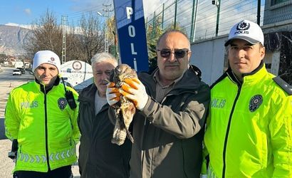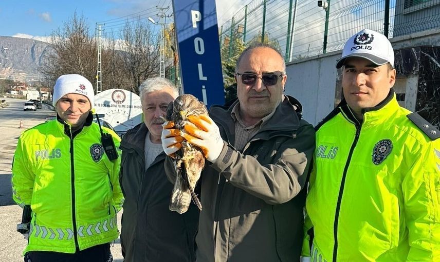 Amasya - Tokat karayolu üzerinde trafik denetimi yapan Amasya Emniyet Müdürlüğü Bölge Trafik Denetleme Şubesi ekipleri, yol kenarında yaralı halde bir kızıl şahin fark etti.
