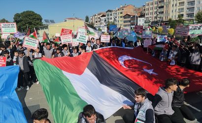 Etkinliğe katılan çok sayıda kişi, ellerinde Filistin ve Türk bayrakları, döviz ve pankartlarla 15 Temmuz Demokrasi Meydanı'na kadar yürüdü.