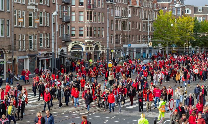 Katılımcılar kırmızı kıyafetler giyerek meydanda toplandı ve yürüyüş boyunca Amsterdam sokaklarında ilerleyip yeniden Müzeler Meydanı'na döndü. Etkinliğe, aralarında çok sayıda uluslararası sivil toplum kuruluşunun Hollanda şubelerinin de bulunduğu 130'dan fazla STK katıldı; organizatörler gösteriye katılımı yaklaşık 250 bin olarak duyurdu.