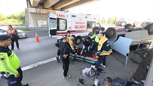 Düzce'de cenaze dönüşü devrilen minibüste 4 kişi yaralandı. Olay yerine sağlık ekipleri sevk edildi.
