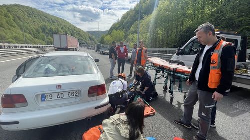 Anadolu Otoyolu'nda meydana gelen kazada otomobil ile oto kurtarıcısının çarpışması sonucu 3 kişi yaralandı.