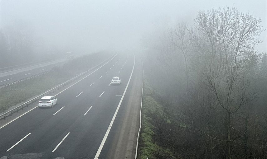 Anadolu Otoyolu'nun Düzce kesiminde sis, görüş mesafesini düşürdü.