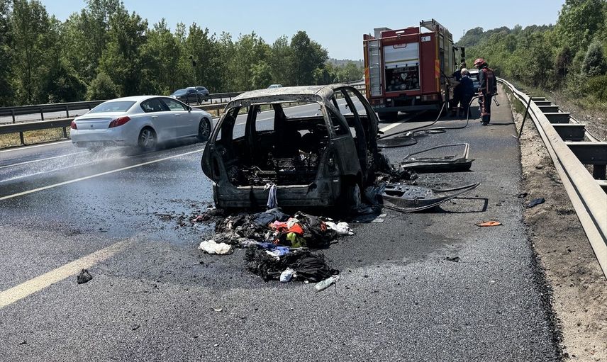 Anadolu Otoyolu'nun Sakarya kesiminde seyir halindeyken yangın çıkan araç kullanılamaz hale geldi.