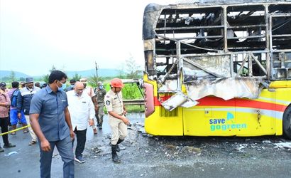 Hindistan'ın Andhra Pradesh eyaletindeki Kurnool bölgesinde meydana gelen kazada, 40 kişilik otobüs iki tekerlekli bir araçla çarpıştıktan sonra alev aldı. Olayı bildiren kaynaklara göre kazada en az 20 kişi hayatını kaybetti.