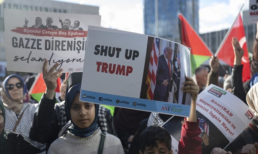 Protestocuların elinde, "Gazze Gazzelilerindir" yazılı pankartlar yer aldı. Ayrıca, "Kahrolsun İsrail" ve "Terörist İsrail, terörist Amerika" gibi sloganlar da sık sık haykırıldı. Etkinlikte, Filistin halkı için dualar edildi.
