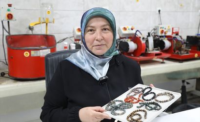 Ankara'nın Çubuk ilçesinde yöreye özgü agat taşıyla takı tasarlayan kadınlar, hem yeni meslek ediniyor hem de aile bütçesine katkı sağlıyor.