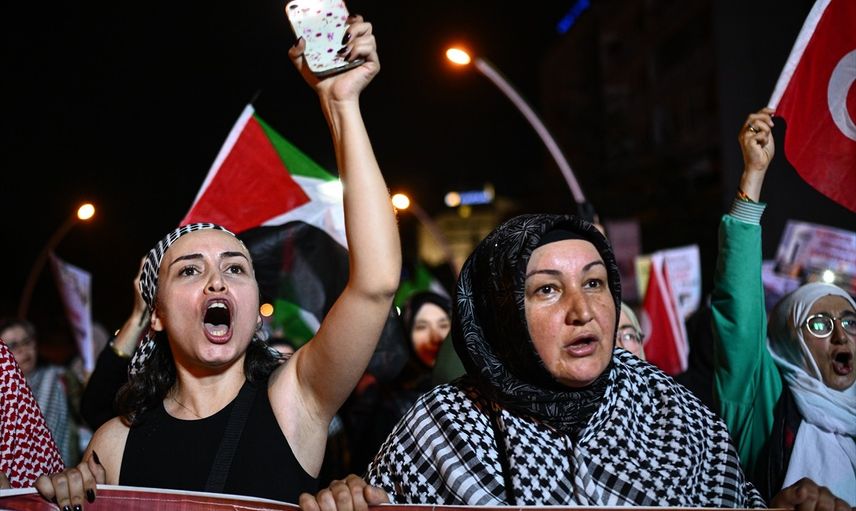 ANFİDAP'ın çağrısıyla çok sayıda kişi Kocatepe Camisi önünde toplandı. Yürüyüşe katılanlar, akşam namazının ardından "soykırıma karşı küresel vicdan" ve "engel tanımayan mücadeleyi destekliyoruz" yazılı pankartları ile büyükelçiliğe doğru yola çıktı.