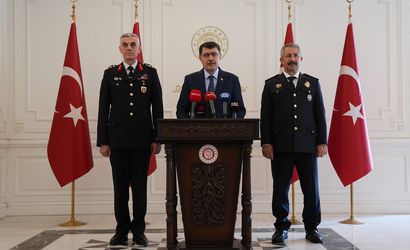 Ankara Valisi Vasip Şahin, valilikte Ramazan Bayramı'nda alınacak tedbirlere ilişkin açıklama yaptı. Ankara İl Emniyet Müdürü Engin Dinç (sağda) ile Ankara İl Jandarma Komutanı Tümgeneral Recep Yalçınkaya (solda), toplantıda hazır bulundu.