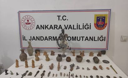 Ankara'nın Etimesgut ilçesinde düzenlenen tarihi eser kaçakçılığı operasyonu kapsamında 69 obje ele geçirildi. Edinilen bilgiye göre, Ankara İl Jandarma Komutanlığı tarafından yürütülen çalışmalarda, Kaçakçılık ve Organize Suçlarla Mücadele Şube Müdürlüğü (KOM), İstihbarat Şube Müdürlüğü ve Bağlıca Jandarma Karakol Komutanlığı tarafından, dün akşam saat 21.00 civarında Yeni Bağlıca Mahallesi'nde operasyon gerçekleştirildi.