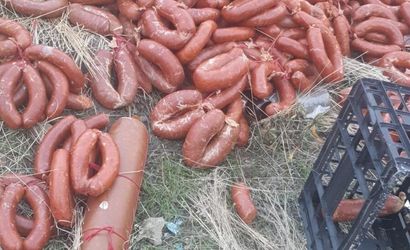 ANKARA'NIN GÖLBAŞI İLÇESİNDE BOŞ BİR ARAZİYE KİMLİĞİ BELİRSİZ KİŞİLER TARAFINDAN ÇOK MİKTARDA SUCUK, KAVURMA VE SALAM ATILDI.