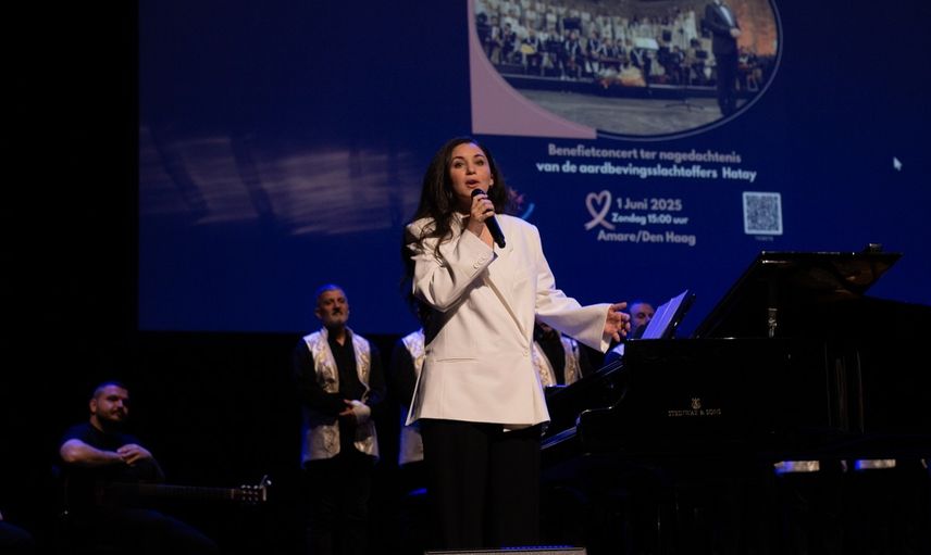 Antakya Medeniyetler Korosu ve sanatçı Karsu, depremzedeler yararına Hollanda'nın Lahey kentinde konser verdi.
