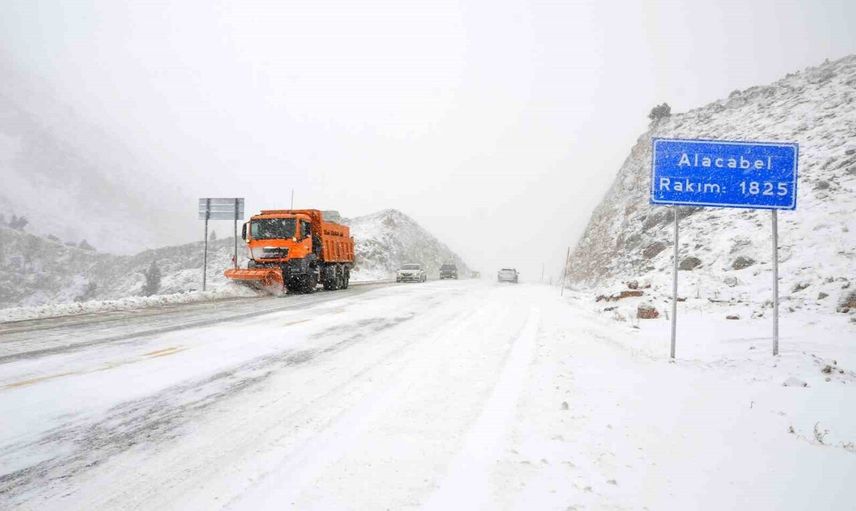 Kar yağışı, Battıçıktı mevkii ile Alacabel Bakımevi arasında yaklaşık 10 kilometrelik bölümde aralıklarla devam ediyor. Geçitte kar kalınlığının yer yer 5-10 santimetreye ulaştığı ve yağışın akşam saatlerine kadar devam etmesinin beklendiği öğrenildi.