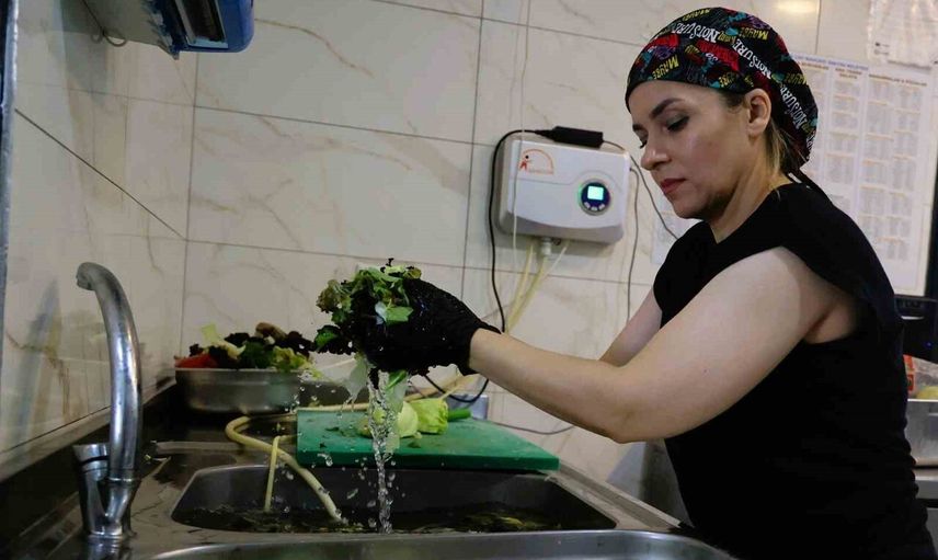 BÜNYESİNDE RESTORAN VE MUTFAK BÖLÜMÜ OLAN TESİSLERDE KULLANILAN YEŞİLLİK, SEBZE VE MEYVELER GÜNLÜK OZONLU SU İLE YIKANARAK DEZENFEKTE EDİLİYOR.