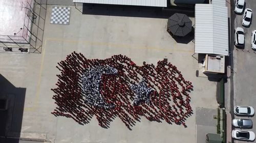Antalya'nın Serik ilçesinde 1300 öğrenci, 23 Nisan etkinlikleri kapsamında Türkiye haritası koreografisi oluşturdu.