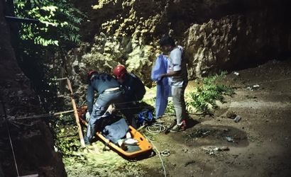 İtfaiye ekipleri tarafından çukurdan çıkarılan yaralı turist, olay yerindeki müdahalenin ardından ambulansla hastaneye kaldırıldı.
