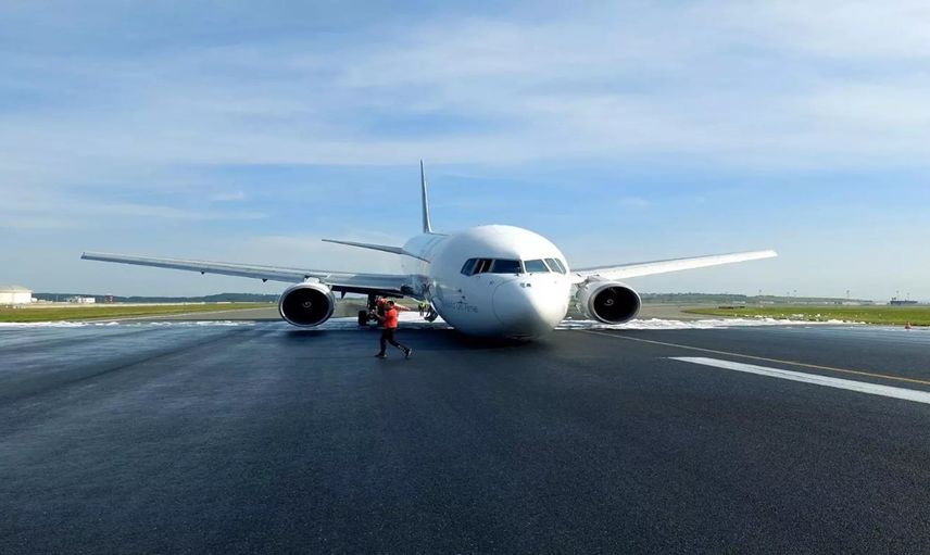 İniş esnasında tekeri patlayan uçak, gövde üstüne iniş yaptı. Uçakta yer alan yolcular, hızlı bir şekilde tahliye edildi. Uçakta yer alan yolcular ve uçuş ekibi ile ilgili herhangi bir olumsuz durum bildirilmezken, pistte hasar oluştuğu aktarıldı.