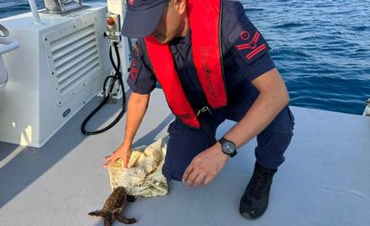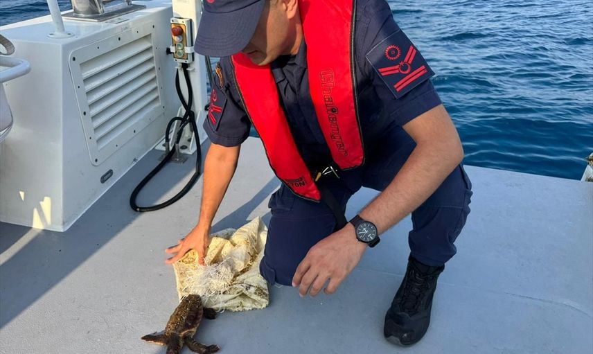 Yapılan incelemede, çuvalın deniz kaplumbağasının ayağına dolandığı tespit edildi. Hızla müdahale eden bot personeli, nesli tükenme tehlikesi altında bulunan kaplumbağayı kurtarıp güvenli bir şekilde sahile getirdi.