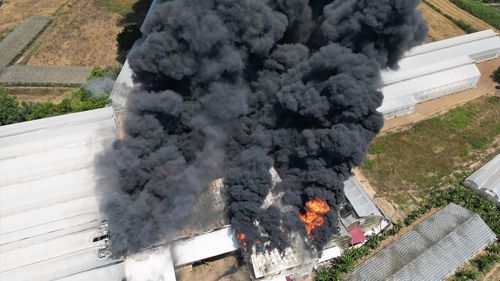 Antalya'nın Gazipaşa ilçesindeki fide üretim tesisinde yangın çıktı, ekipler yangını kontrol altına almak için müdahale ediyor.