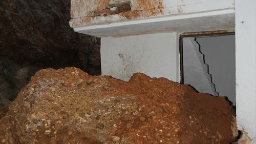 Antalya'nın Serik ilçesinde yağmur nedeniyle oluşan heyelanda, bir kaya parçası 2 katlı eve çarparak büyük hasara yol açtı.