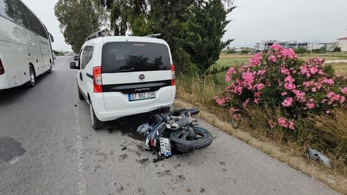 Antalya'nın Manavgat ilçesinde park halindeki otomobile çarpan motosiklet sürücüsü K.Ö. yaralandı.