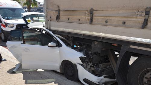 Antalya'da Park Halindeki Tıra Çarpan Otomobilde 4 Yaralı