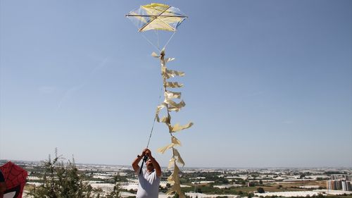 Antalya'nın Serik ilçesinde olta ile uçurtma uçuran Niyazi Göksu, Eskiyörük Şenliği'nde ilgi odağı oldu.