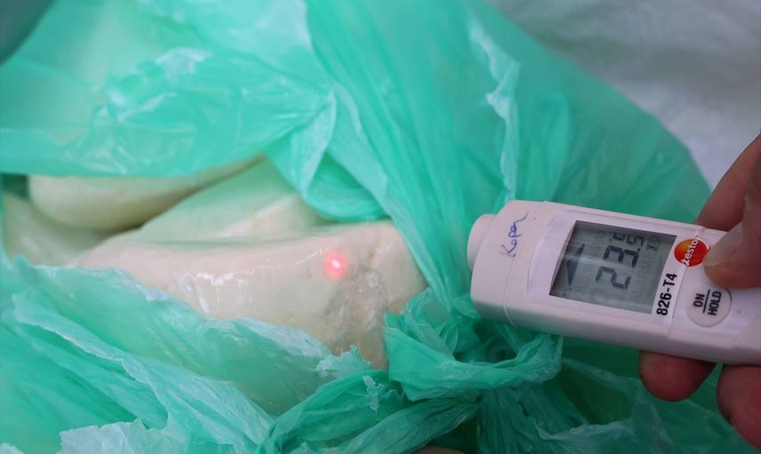 Ekipler, bir otobüs firmasından indirilen sekiz koli ve dört çuval üzerinde yaptıkları incelemede, kolilerde 400 kilogram dil peyniri ve çuvalların içinde 300 kilogram tulum peyniri bulunduğunu belirledi. Bu peynirlerin soğuk zincir şartlarına uygun olmadan taşındığı saptandı.
