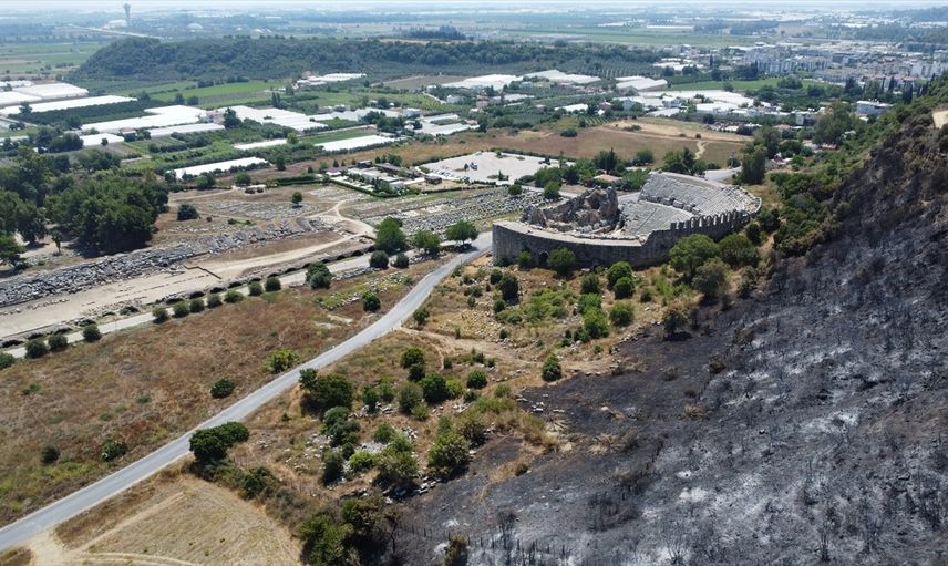 Bölgedeki yangınlar sonrası durumu değerlendirmek için dronla havadan görüntüler alındı. Elde edilen görüntülerde, Antalya'nın Aksu ilçesindeki Kurşunlu Mahallesi sınırlarında yanan ormanların büyük bölümü siyaha büründü. Yangın alevlerinin, Perge Antik Kenti sınırlarına yaklaşması büyük bir endişeye neden oldu.
