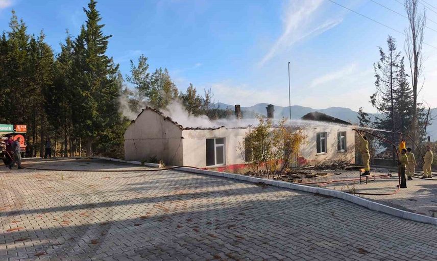 Kullanılmayan eski okul binasının çatısı yangında hasar görürken, jandarma ekipleri yangının çıkış nedenine ilişkin inceleme başlattı.