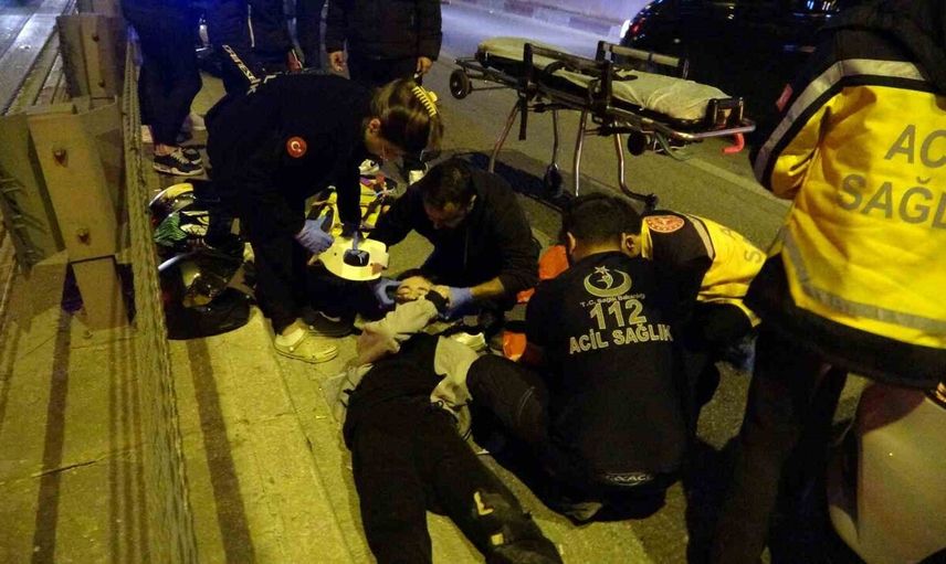 Ancak motosikletin hızının yüksek ve takip mesafesinin kısa olması nedeniyle duramayarak önünde ilerleyen 07 ABE 266 plakalı Nissan marka otomobile çarptı. Çarpmanın etkisiyle savrulan sürücü bariyerlere çarptı.