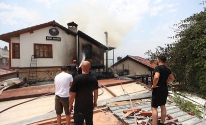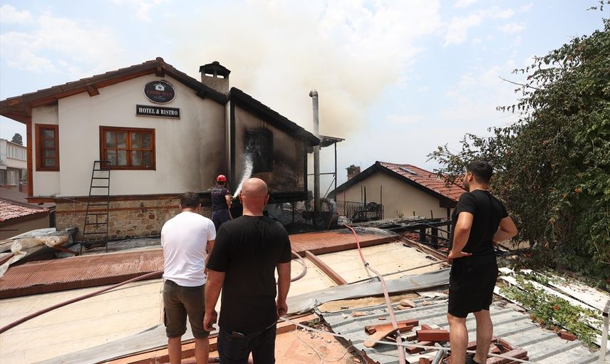 Antalya'nın Muratpaşa ilçesindeki tarihi Kaleiçi'ndeki bir otelde başlayan ve yanındaki işletmeye sıçrayan yangına itfaiye ekipleri müdahale ediyor.