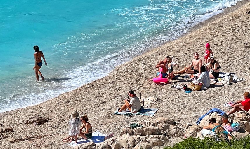 Antalya Kaş'ta Güneşli Hava Sahilleri Doldurdu: Tatilciler Denize Girdi