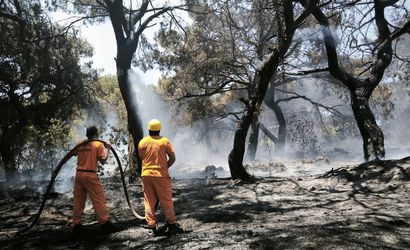 Antalya'nın Muratpaşa ilçesinde çıkan orman yangınına havadan ve karadan müdahale ediliyor.