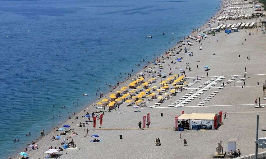 Antalya'nın gözde sahillerinde, Kurban Bayramı arifesine özel büyük bir yoğunluk yaşanıyor. Hava sıcaklığının 34 derece, nem oranının ise yüzde 44 olarak ölçüldüğü şehirde, deniz suyu sıcaklığı 22 derece civarında seyrediyor.