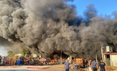 Antalya'nın Serik ilçesinde iki firmaya ait depolarda çıkan yangına itfaiye ekipleri müdahale ediyor.