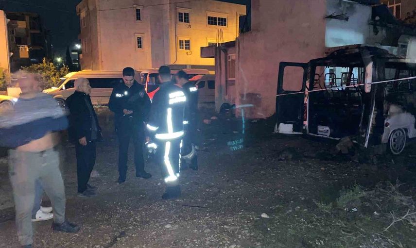 Yangın, saat 23.00 sıralarında gerçekleşti. Edinilen bilgiye göre, evinin önünde park halinde bulunan 07 AJH 080 plakalı minibüs, sahibi İbrahim A.'ya ait araç bir anda alev aldı.
