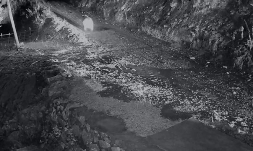 Taylan Çebi, ayıyı evinin önünden uzaklaştırmak amacıyla kamyonetinin kornasına basıp hayvanı kamyonetiyle kovaladı. Söz konusu anlar hem güvenlik kamerası hem de cep telefonu kameralarına yansıdı.