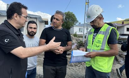 Ardahan Valisi Hayrettin Çiçek, depremin ağır etkilerini hisseden Çullu köyünde yürütülen konut ve ahır inşaatlarını yerinde inceleyerek, projeyle ilgili bilgiler aldı.
