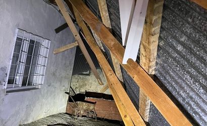 Ardahan'da etkili olan fırtına nedeniyle bazı evler ve ahırların çatısı uçtu.