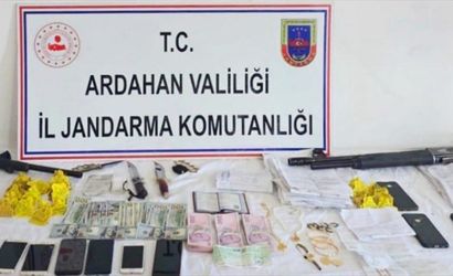 Ardahan merkezli 4 ilde hayvan ticaretinde nitelikli dolandırıcılık yapıldığı iddiasıyla gözaltına alınan 5 şüpheliden 4'ü tutuklandı. Yapılan aramalarda, 17 senet, 1 milyon lira değerinde çek, 2 ruhsatsız av tüfeği, muşta, bıçak, 7 fişek, 81 hayvan pasaportu, 20 basıma hazır hayvan küpesi, 14 cep telefonu, 1 alacak-verecek defteri, suçtan elde edildiği değerlendirilen 49 bin 800 lira ve bir miktar dövize el konuldu.