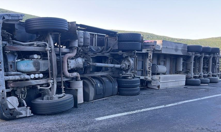 Ardahan'ın Göle ilçesinde devrilen tırın sürücüsü yaralandı.