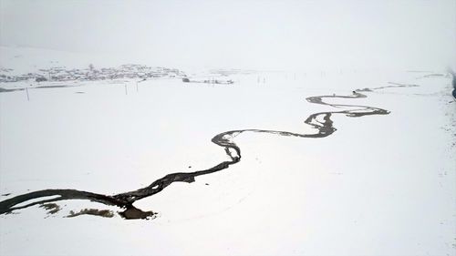 Ardahan'ın Göle Ovası'ndaki karla kaplı menderesler, dronla görüntülenerek kış güzelliklerini gözler önüne serdi.