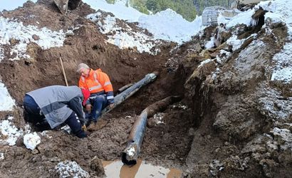 ARDAHAN'DA ILGAR DAĞI GEÇİDİ'NDE YAPIMI DEVAM EDEN TÜNEL İNŞAATINDA SU BORUSU PATLADI. EKİPLER BORU HATTINI ONARMAK İÇİN ÇALIŞMA BAŞLATTI.