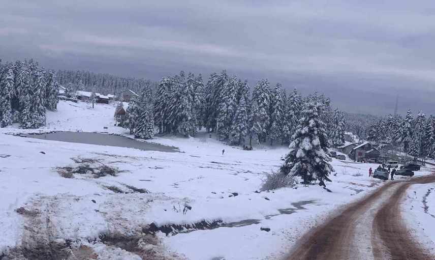 Dün gece sabaha kadar süren yağış, Arkut Dağı'nın yüksek kesimlerinde görsel bir değişim oluşturdu ve bölgeyi kış manzarasına çevirdi.