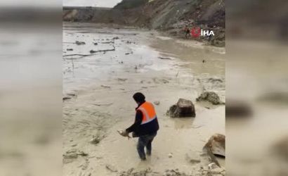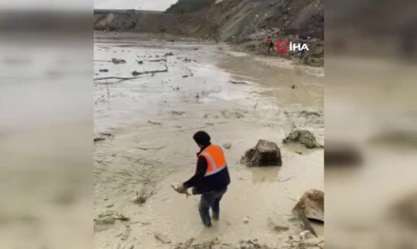 Toprak dökümü sonucu göl alanı bir çamur tabakasına dönerken, binlerce balık oksijensizlik nedeniyle yaşam mücadelesi veriyor. Göldeki çalışan işçiler, balıkların balçık içinde çaresizce çırpındığı anları cep telefonu kamerasıyla kaydetti.