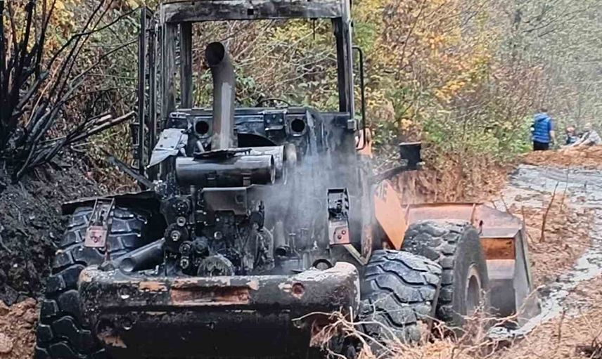 Artvin Borçka'da İş Makinesi Alev Aldı