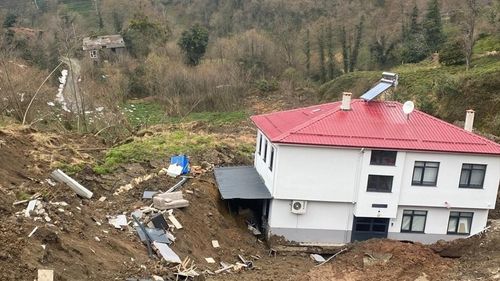 Artvin Hopa'da meydana gelen heyelan sonucu bir ev 50 metre sürüklendi, yapısal bütünlüğü ise korundu.