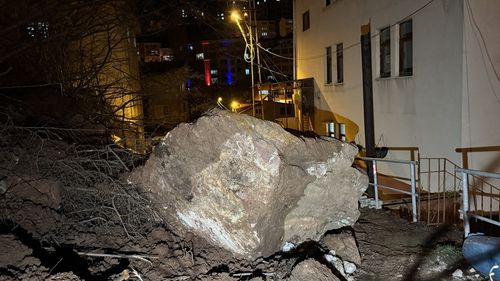Artvin'de meydana gelen heyelan nedeniyle mahalle yolu ulaşıma kapandı, dev kaya kütlesi yakınındaki bina için tehlike arz etti.
