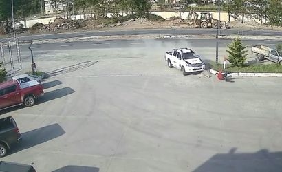 Artvin Hopa'da akaryakıt istasyonu çalışanına kamyonet çarptı