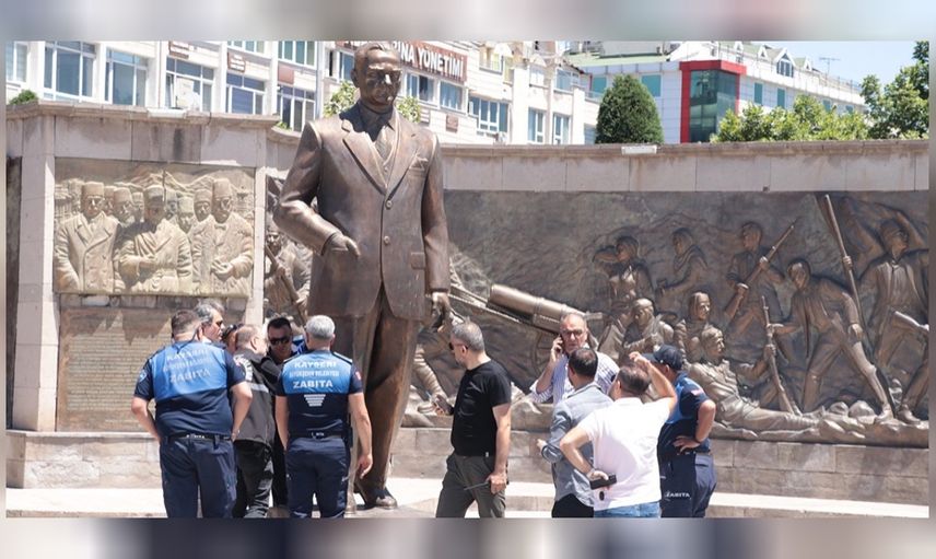 Kayseri’de Kocasinan’da yer alan Atatürk anıtına saygısız bir saldırı haberi öğrenildi. Bir kadın ve bir erkek iki saldırganın Cumhuriyet Meydanı’nda yer alan Atatürk anıtına baltayla 13 darbe vurduğu ve anıta zarar verdiğini zabıta ekipleri fark etti. 2 şüpheliye de müdahale eden zabıta ekiplerinin ihbarı üzerine olay yerine emniyet görevlileri geldi.